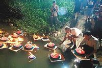 每年农历七月十四/十五日为盂兰节,又称中元节、七月半或鬼节,过去人们在这天晚上除拜祭自己的祖先外,还准备一些菜肴、酒、饭、金银衣纸之类到路口去祭祀鬼神。