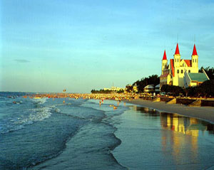 北海银滩“滩长平,沙细白,水温净,浪柔软,无鲨鱼”,可容纳国际上最大规模的沙滩运动娱乐项目和海上运动娱乐项目,是我国南方最理想的滨海浴场和海上运动场所。这里的常年水温在15℃-30℃之间,是个理想的天然浴场。