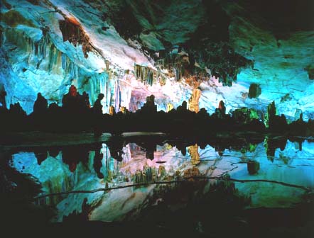 被称为“大自然艺术之宫”的芦笛岩在市郊光明山上。早在唐代,这里就已经是个很有名的游览胜地了,在洞内发现的年代最早的题字,出自唐初一位周游全国各地的名僧。宋代以后,因为附近的村民利用这里来躲避战乱兵匪,于是这里被遮蔽起来,终于渐渐不为人知。芦笛岩的重新发现和开发,其实并不很久。